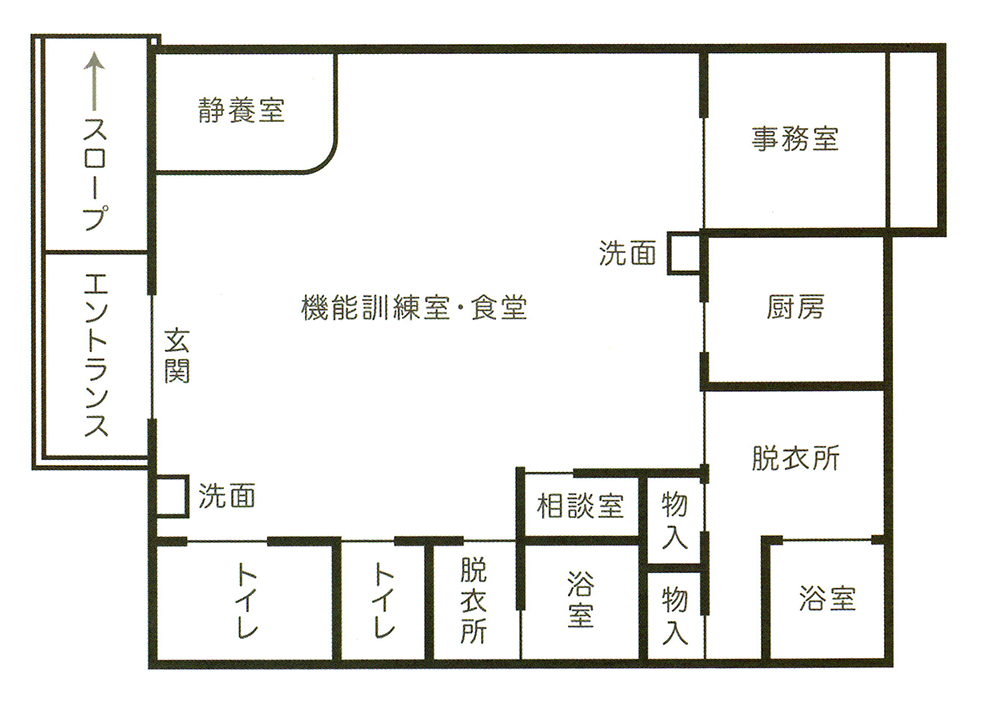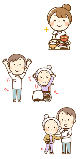 高齢者の方をお家まで送迎し、食事や入浴、レクリエーション等さまざまなサービスを提供し、生活の自立や心身機能の向上・維持を図ります。